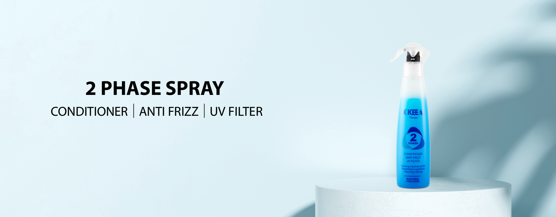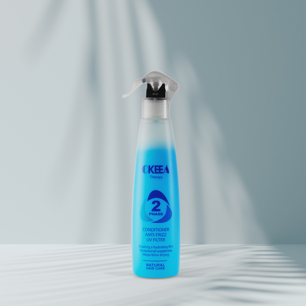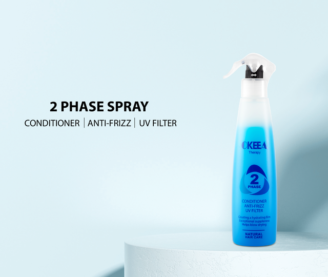 اسپری دو فاز اُکیا با فرمولی سبک و مغذی، غنی از پروتئین هیدرولیز شده ابریشم و گلوتن هیدرولیز شده گندم است که به بازسازی و تغذیه تارهای مو کمک می‌کند.
